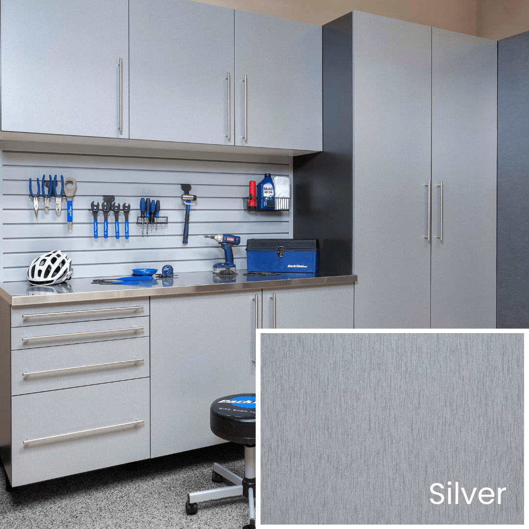 All garage cabinets are installed with full 1/4″ backing. Full backing strengthens the cabinets and eliminates gaps, which could otherwise provide points of entry for dust and insects.